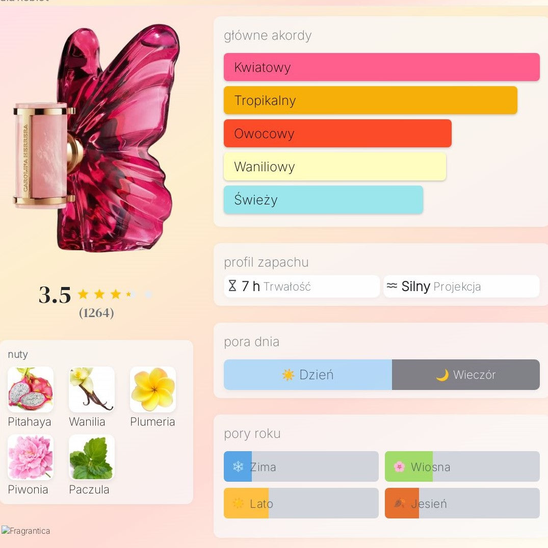 Klimatyczne jesienne / zimowe wieczory lub chłodniejsze dni — choć zapach ma owocowo-kwiatowe akcenty, jego baza daje ciepło i otulenie; w chłodzie może dawać ciekawy, przyjemny kontrast.